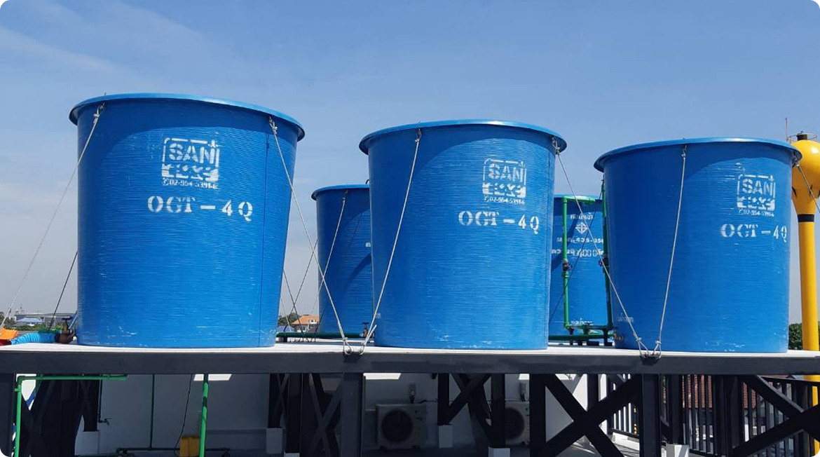 ถังเก็บน้ำไฟเบอร์กลาส FRP แบบตั้งพื้น OGT Series และแบบสำหรับฝังใต้ดิน UGT Series ผลิตจากไฟเบอร์กลาสเสริมแรง (FIBERGLASS REINFORCED PLASTIC) ซึ่งเป็นวัสดุที่มีคุณลักษณะเหมาะสม และเป็นประโยชน์ต่อการใช้สอยอย่างคุ้มค่าเพราะมีอายุการใช้งานที่ยาวนาน มีความคงทนต่อสภาพดินฟ้าอากาศและการใช้งานรับแรงดันน้ำได้สูง ถังเก็บน้ำไฟเบอร์กลาสปราศจากสารพิษปลอมปนและป้องกันการกัดกร่อนหรือการเกินสนิมจากคลอรีนในน้ำประปา ดังนั้นถังเก็บน้ำไฟเบอร์กลาส SAN-PAC จึงมีคุณภาพ สะอาด ปลอดภัย สำหรับใช้กักเก็บน้ำเพื่ออุปโภค นอกจากนี้ ตัวถังยังมีน้ำหนักเบา ง่ายต่อการติดตั้งกับระบบน้ำใช้ของอาคาร และถังเก็บน้ำไฟเบอร์กลาสมีให้เลือกหลายขนาดตามความเหมาะสมกับพื้นที่หน้างาน