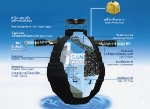 ถังบำบัดน้ำเสียพีอี เติมอากาศ (PE) รุ่น SAT เป็นถังบำบัดน้ำเสียแบบรวมขั้นตอนการเกรอะ (Septic) และเติมอากาศ (Aeration) บำบัดน้ำเสียได้อย่างมีประสิทธิภาพสูงสุดและไร้กลิ่นเหม็นรบกวน ตัวถังทำด้วยพลาสติกชนิดพิเศษ LLDPE มอก.816-2538 ฝาปิดตัวถังทำด้วยเหล็กหล่อ (CAST IRON) หรือ ABS และ เครื่องเติมอากาศ : SAN-AIR BOLWER
